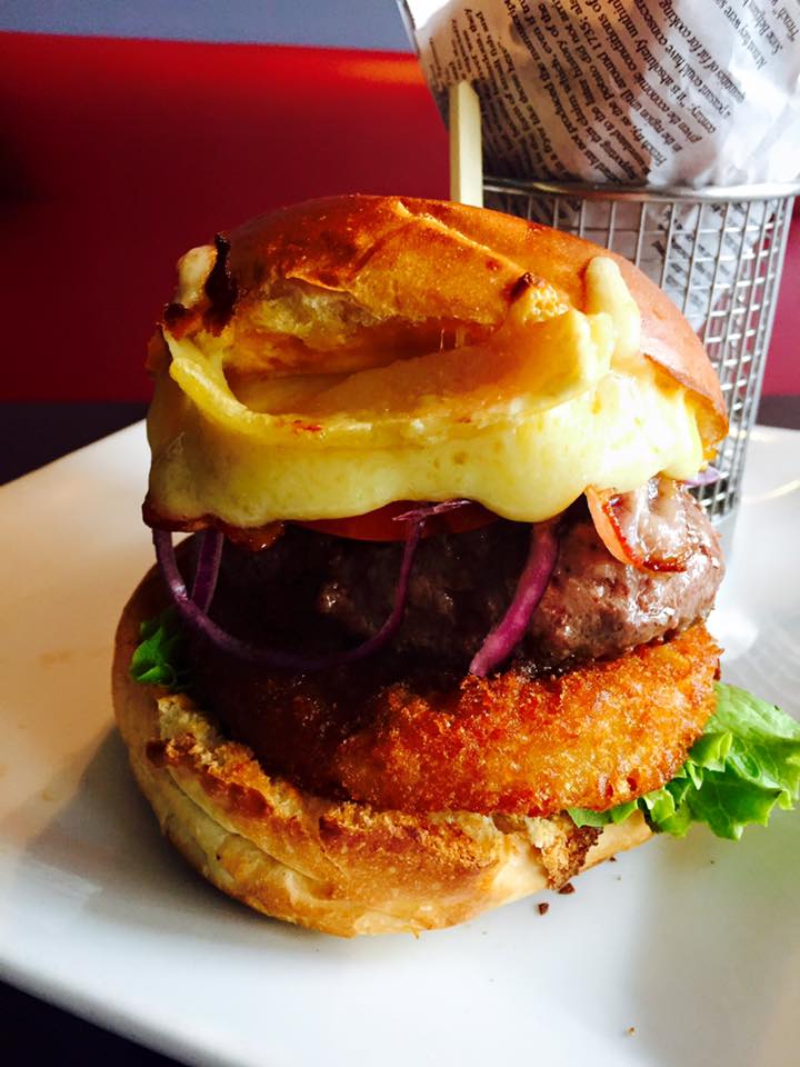 pain burger, steak 150 gr., chèvre, reblochon, mozzarella, Saint-Nectaire, cheddar, rösti