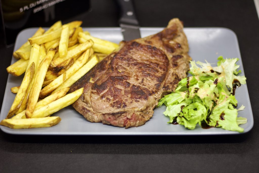 viande charolaise 180 gr. avec condiments, préparé ou classique, ou à l’italienne avec supplément de 1,50 €