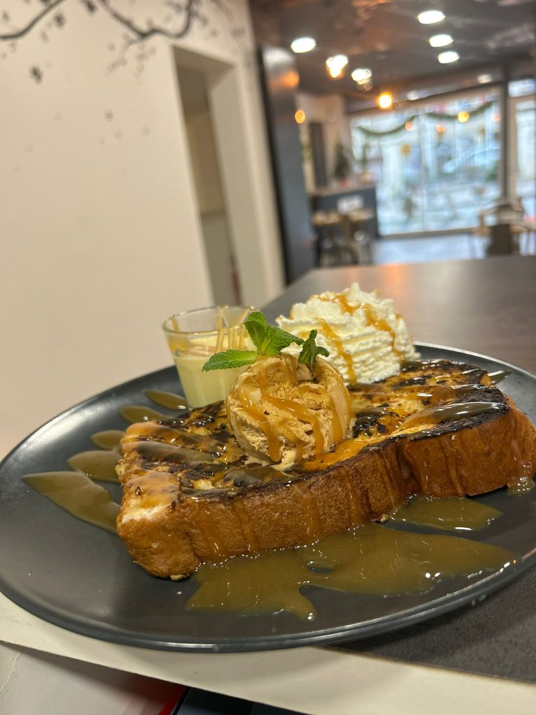 Sneakers , crème sucrée ,boule de glace pralinée sauce noisette